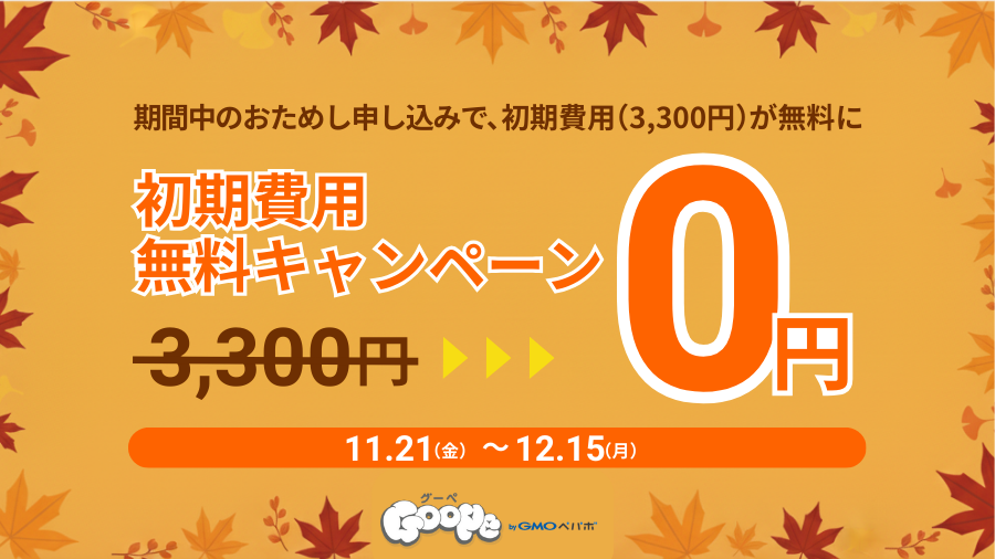 本日より、初期費用(税込み3,300円)が無料となるキャンペーンがスタートしました。